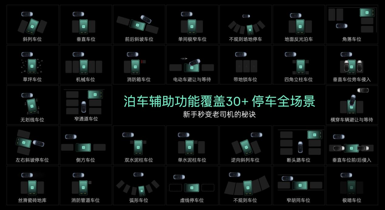 在具体的泊车功能方面,车辆配备了全场景泊车辅助系统,可以覆盖30多种停车场景。无论是常见的垂直、水平、斜列车位,还是超窄、无划线、断头路、机械车位等特殊场景,系统都能从容应对。对于宽度仅40多厘米的超窄车位,以及需要精确操作的机械车位,只要满足基本的空间和承重要求,车辆都能完成泊入操作。