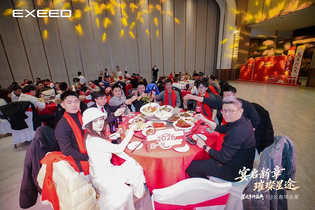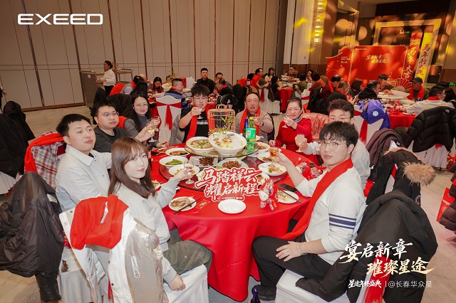 EXEED星途营销中心东北大区黑吉区域经理索超在致辞中表示:“星途品牌的每一步成长,都离不开在座每一位家人的支持与信任。今晚,我们不仅是一场宴会,更是一次家人的团聚,一次心灵的交流。”