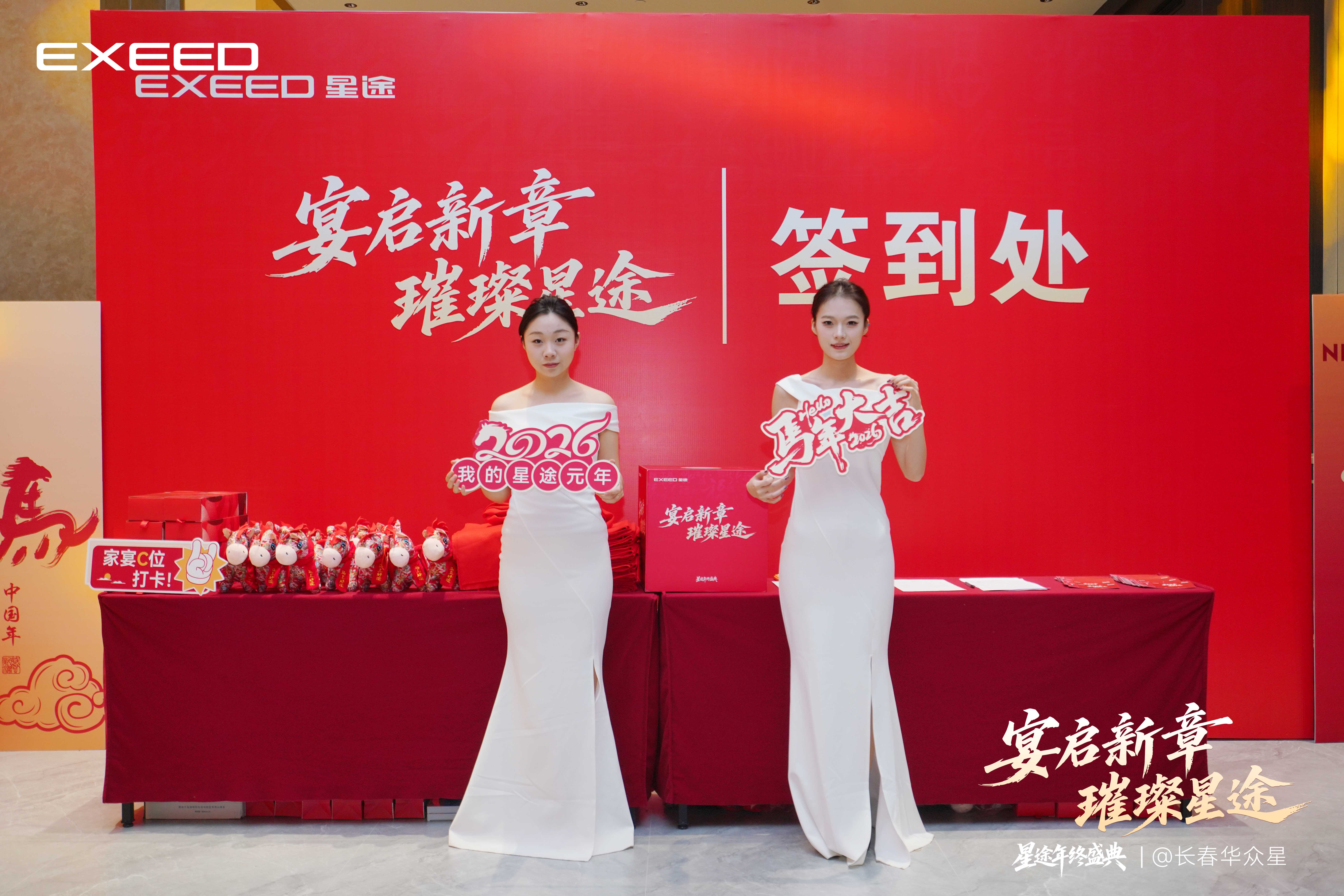 签到区设置于红事会酒店背板前,嘉宾们在此领取寓意新年红火吉祥的吉祥物和红围巾,现场洋溢着浓厚的节日气氛。