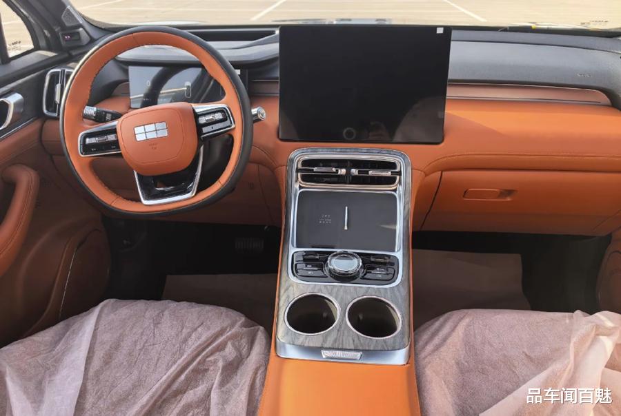 视线转向车内,新车就连内饰布局结构也和银河M9比较相似。而其车内所采用的全液晶仪表和大尺寸悬浮式中控屏以及电子怀挡的组合,搭配多色软硬材质相辅相成的T字型布局,甚至让其车内的高端科技化设计格调,似乎也不会比银河M9逊色多少。此外,新车还将配备Flyme Auto智能座舱系统与千里浩瀚辅助驾驶H3方案等现阶段家族最新的智能化科技。
