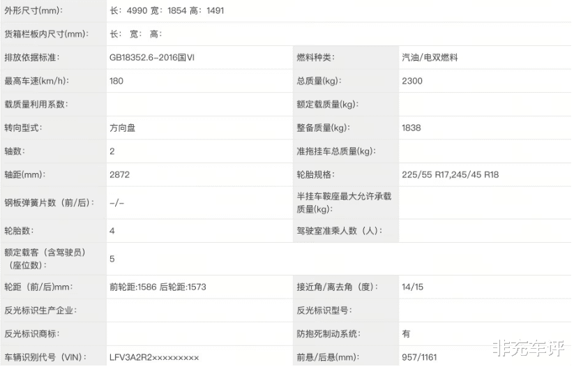 尺寸数据很有意思。车长4990mm,比燃油版一样,但轴距多了1mm,变成了2872mm。这1mm的差距,大概率是底盘件或者悬挂为了适应电池包重量做的微调,根本不是为了空间。