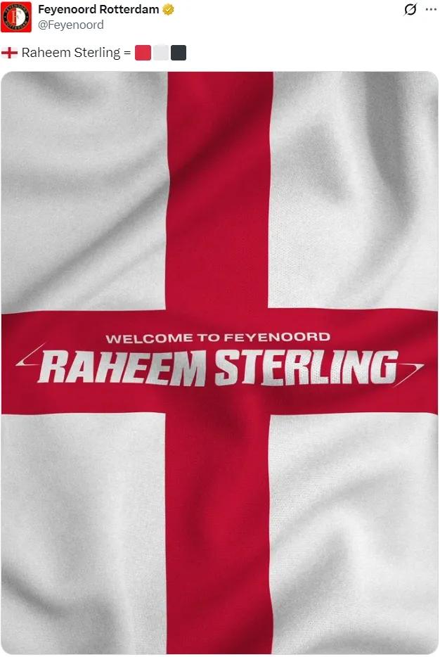官方:费耶诺德宣布免签斯特林,双方签署了一份本赛季结束后到期的合同。