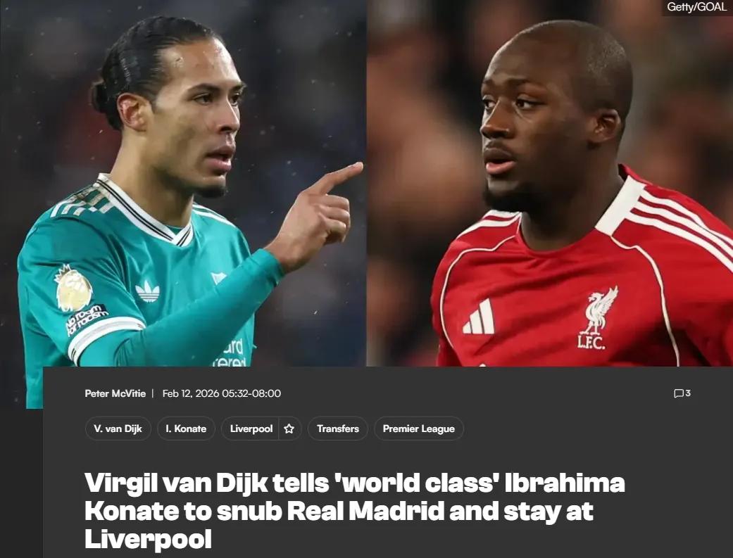 范迪克在接受采访时明确表示,他希望自己的搭档科纳特能续约留队。