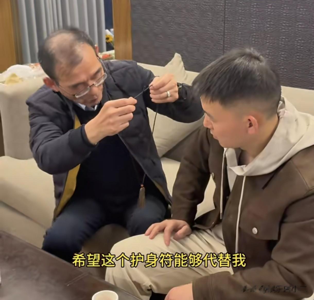 那是老谢随身带的平安符,跟着老谢很多年了,一直没离开过他,就在谢浩男27岁生日这天,老谢送给了儿子,并说出了心中的愿望。