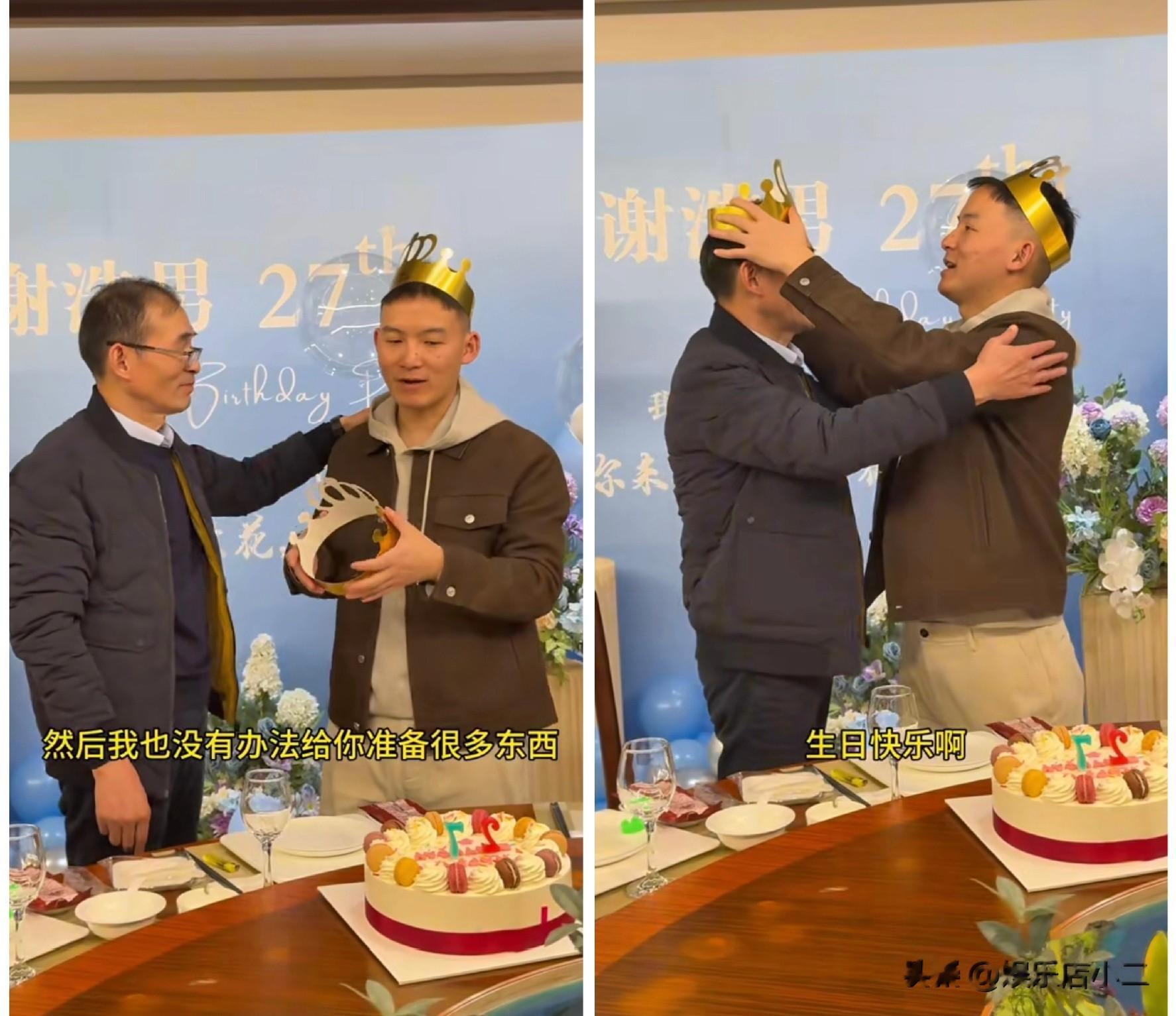 不仅如此,老谢还特意让酒店的工作人员给谢浩男准备了27朵鲜花,也正对了谢浩男27岁生日。
