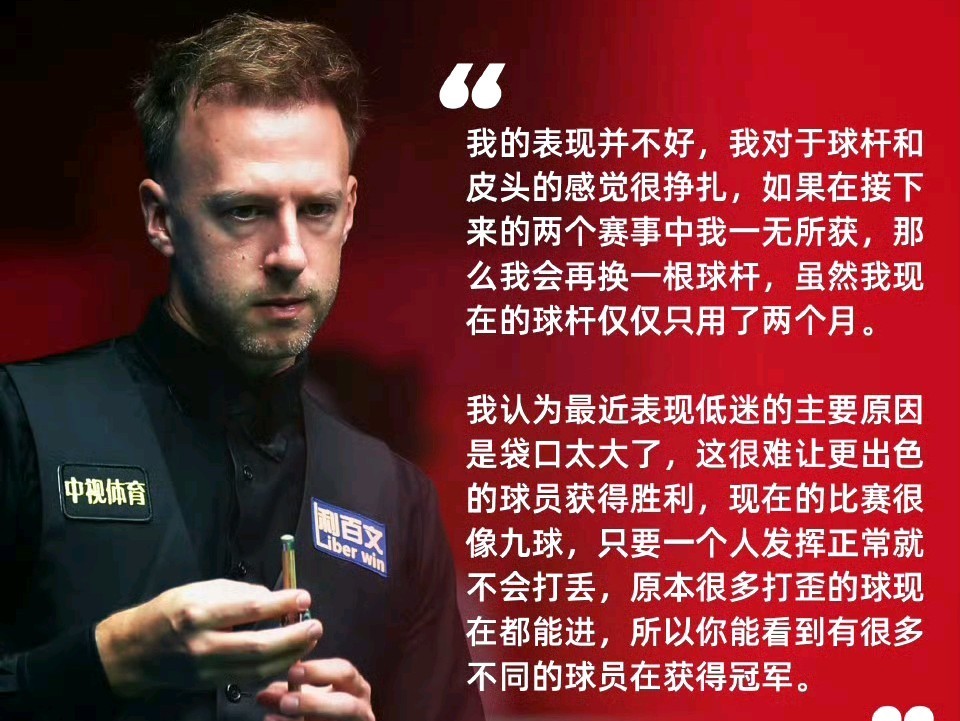 有意思的是,特鲁姆普晋级后接受采访,话有点多。他说自己最近打得不好,球杆有问题,弟弟因为签证来不了,没法陪练,但最关键是——球台袋口太大,跟九球似的,歪一点也能进。这话一出,立马炸锅了。有人觉得他太挑剔,也有人觉得不无道理。你说呢?打偏了都能进,高手还怎么靠准度吃饭?
