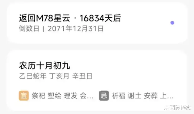 打开手机日历,设置倒计时。名称为返回M78星云,永不重复,闹钟提醒就算了。
