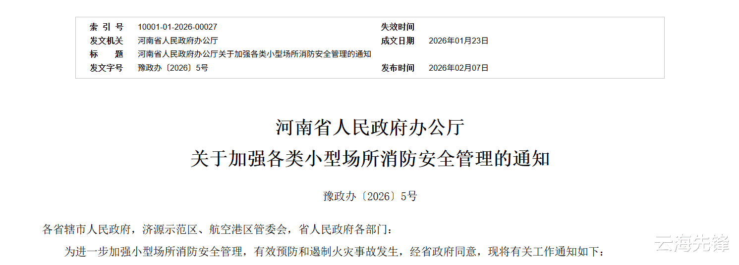 近日,河南省印发《关于加强各类小型场所消防安全管理的通知》,明确从压实属地责任、落实部门监管、夯实主体责任、营造全民氛围四大方面部署工作。