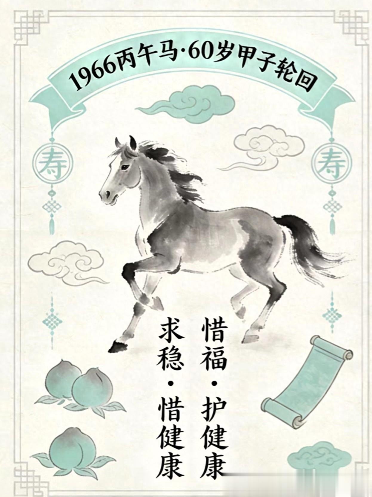 1966年丙午马年出生的你,2026年再逢丙午马年,60岁刚好走完一个甲子轮回,这“便是双重丙午马年”的由来。