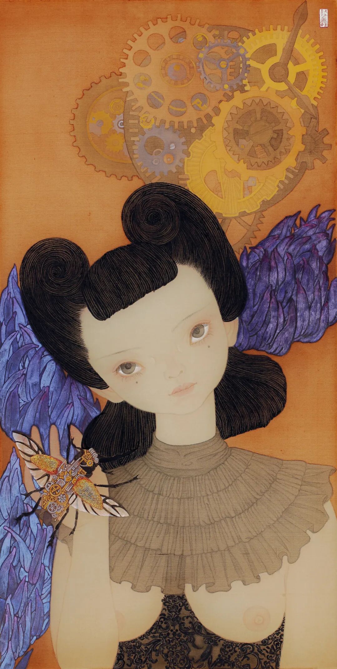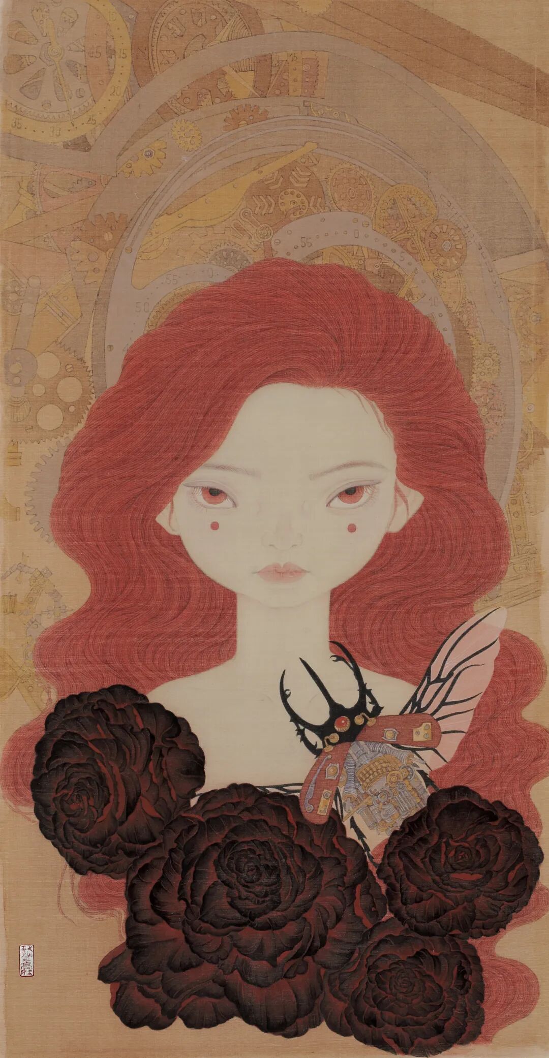 《时间·我·幻梦》系列的诞生,始于现实与幻想碰撞时迸发的花火,也源于一个身体里自由与“禁锢”的反复拉扯与无声抗争。在那些光怪陆离的幻梦中,我肆意涂抹情绪,想象自己是生着翅膀的昆虫,轻盈穿梭于自然之间,可内心却渐渐空芜,只剩下齿轮吱呀、滴答作响的机械回音。