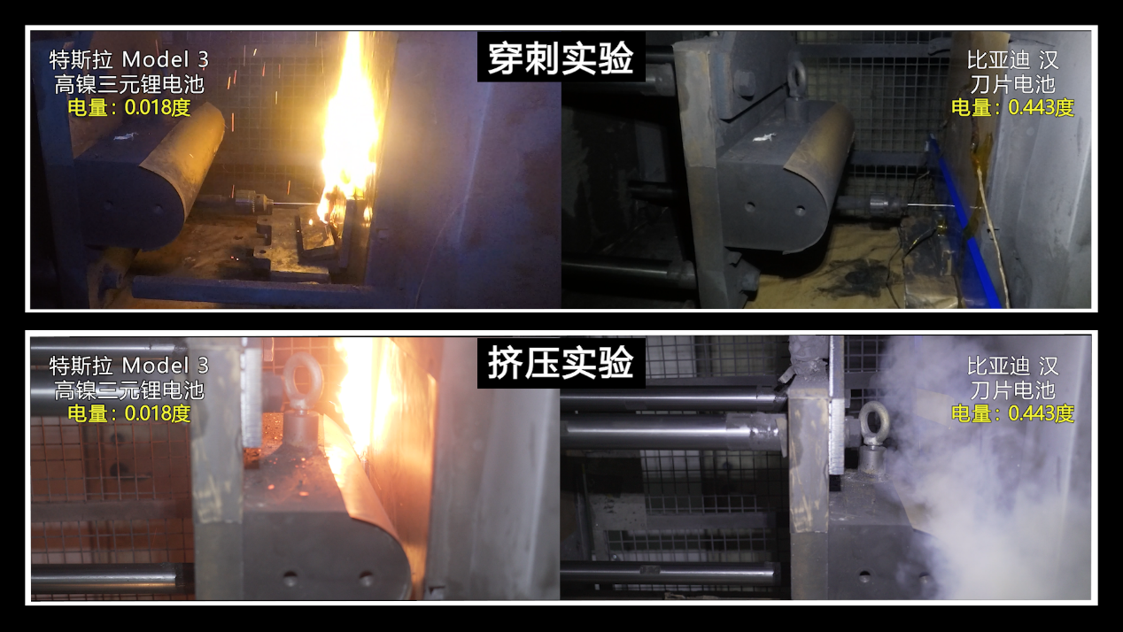 特斯拉的质量问题和比亚迪安全成了一份鲜明的对比,近期一条比亚迪汉刀片电池与特斯拉model3高镍三元锂电池的对比视频在网上流传很广,视频从针刺、挤压和炉温三个实验对比了两种电池的安全性。三种实验条件下比亚迪的刀片电池没有出现任何剧烈的自燃或者爆炸等热失控现象,而特斯拉的高镍三元锂电池无一例外地都出现了爆燃,充分说明了比亚迪的安全性高于特斯拉。