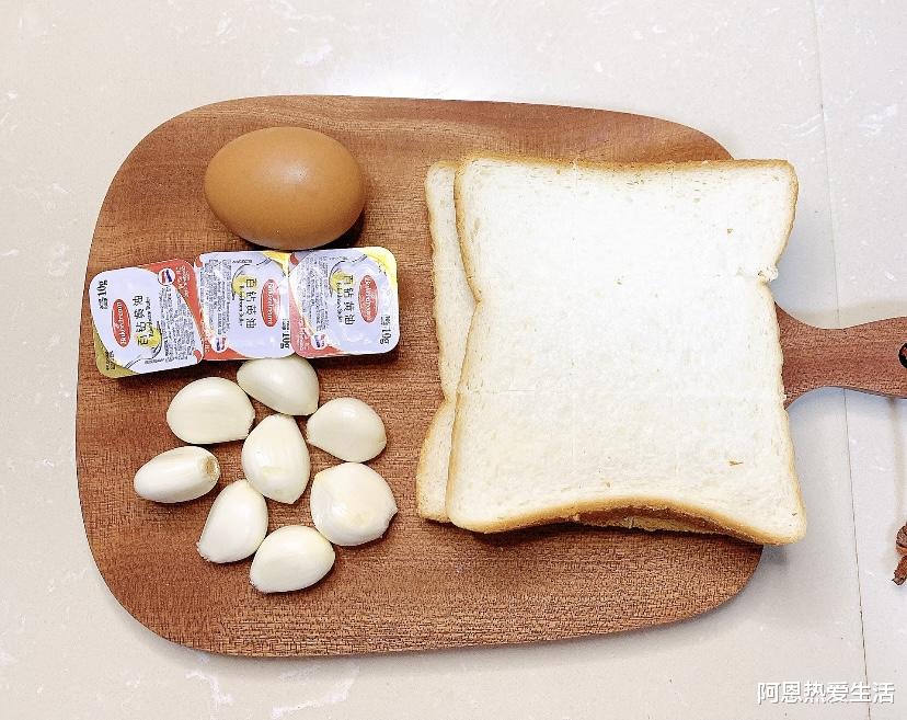 食材清单:吐司面包:2-3片(放了两天的吐司效果更佳),大蒜:4-5瓣(爱蒜人士请自行加量),黄油:50克(动物黄油更香,植物黄油也可替代),盐一小撮(约1/4茶匙),欧芹碎:可选(没有就用小葱代替)
