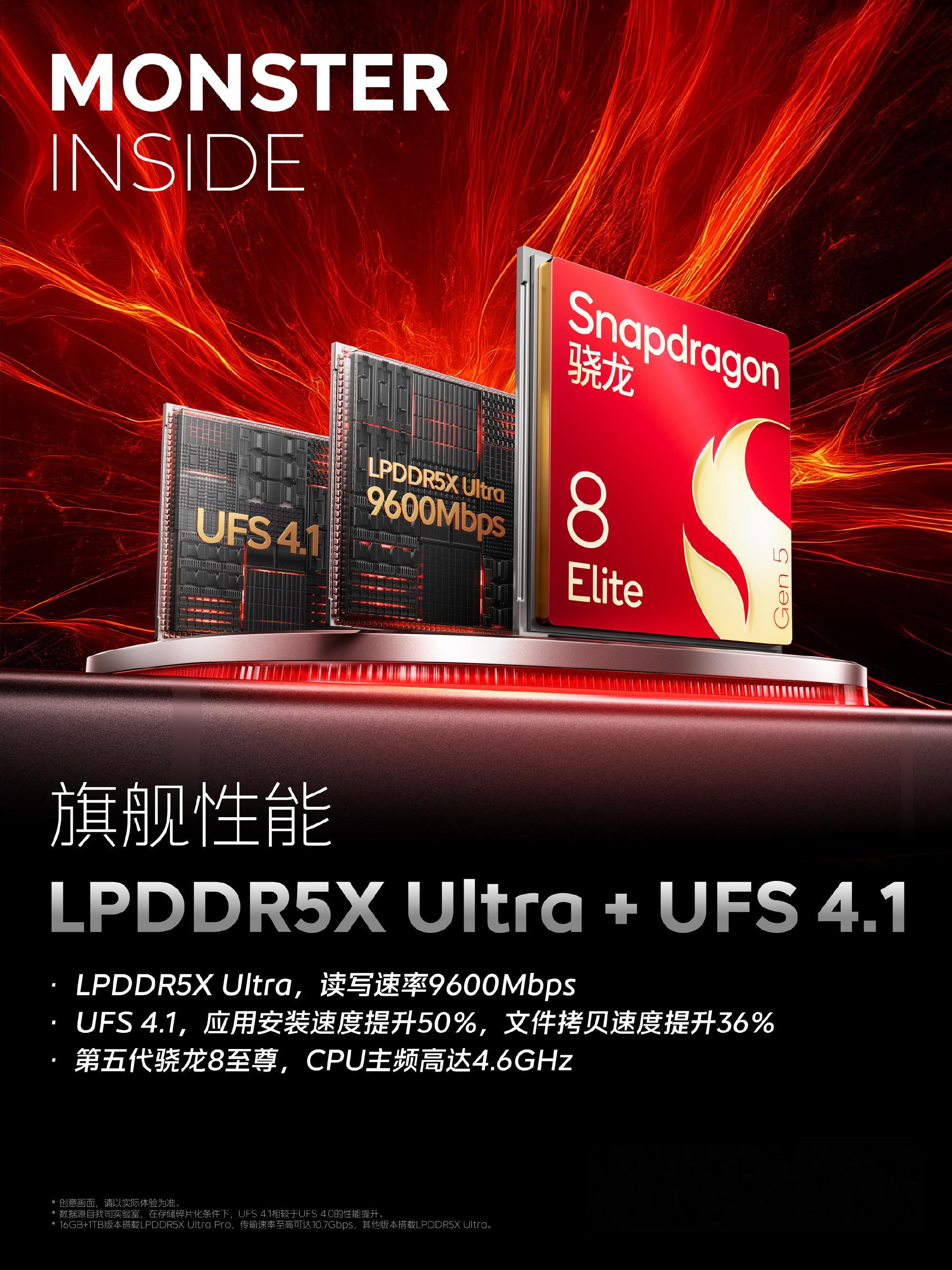 除此之外,该机还提供旷野、传奇版、赛道版配色,一共四款电竞感配色,风格各异任你挑选。作为新一代KPL官方比赛用机,据悉该机性能突破极限,搭载进行了极致调校的第五代骁龙8至尊版,更有LPDDR5X Ultra+UFS4.1进行配合,性能实力和读写速度快人一步。游戏方面,自研电竞芯片 Q3的加入,让这款手机能够带来更更极致的手机游戏体验,支持全场景光线追踪,并且可实现2K+144FPS超分超帧,带来主流手游持久稳定的高帧率表现。