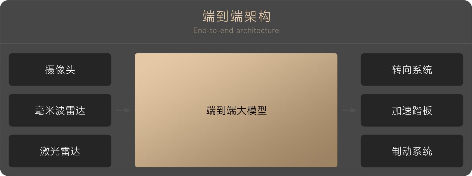 而端到端架构则将这三步合一,用大模型直接把传感器采集的原始数据,运算输出成最终的行驶轨迹,大幅减少了中间环节的信息损耗。