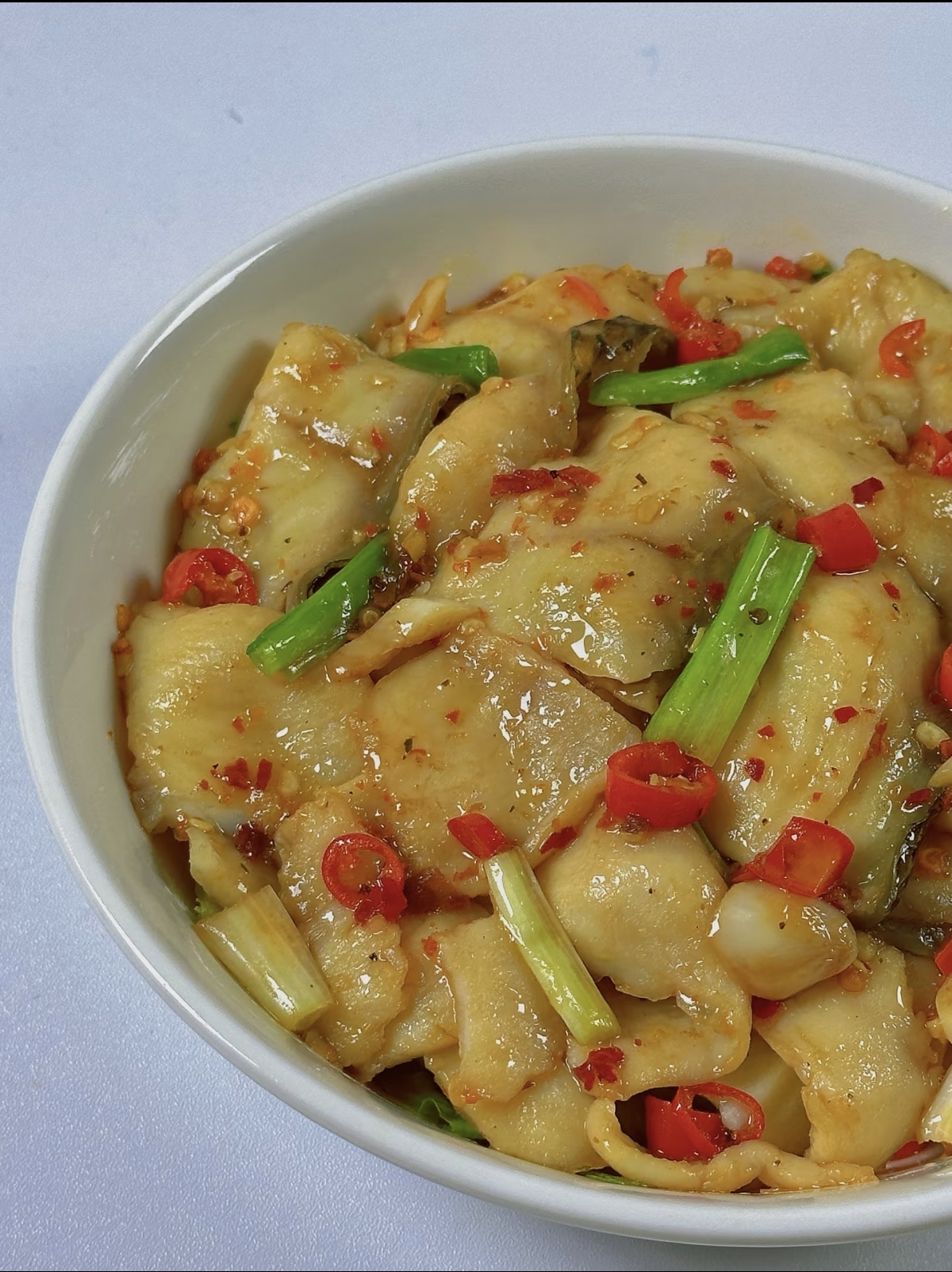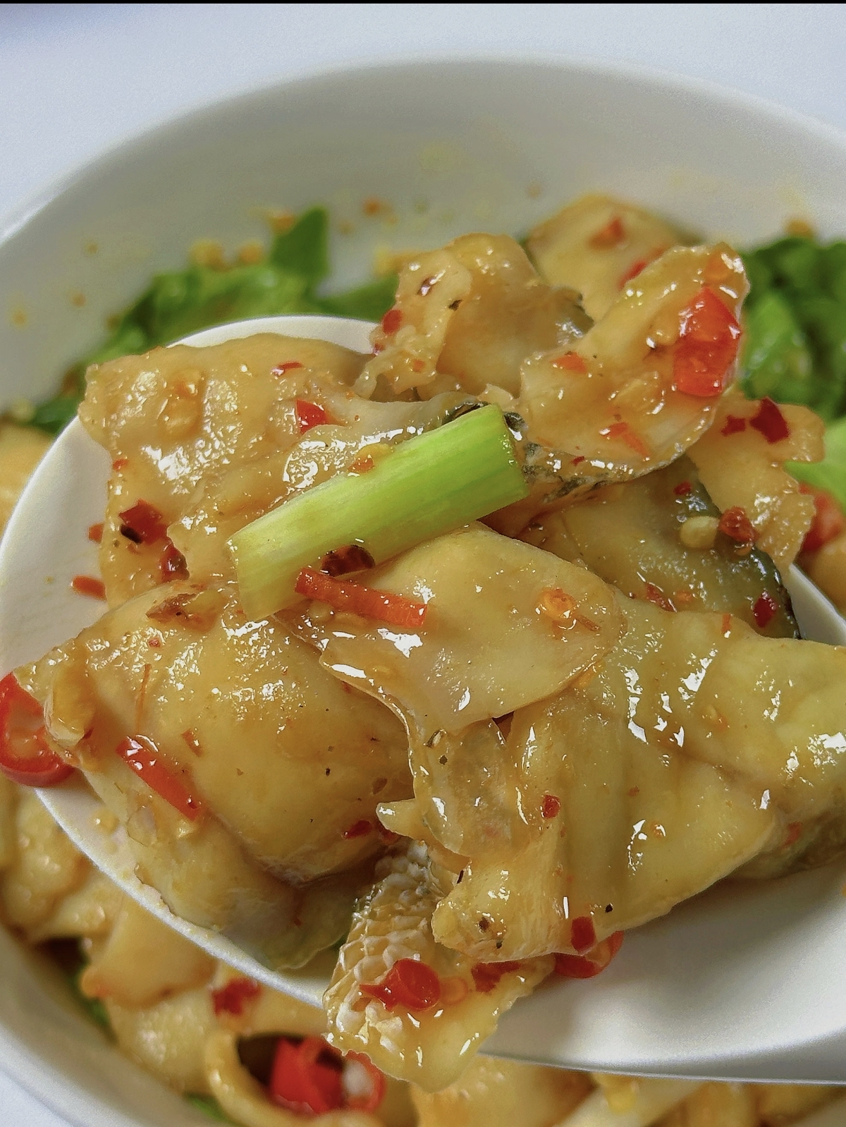 当红油包裹着雪白的鱼片呈现在眼前,视觉上已是极大的享受。夹起一片送入口中,先是麻辣鲜香的冲击,随后是鱼肉本身的清甜与嫩滑,在舌尖上交织成一首动人的味觉交响曲。那“糯叽叽”的口感,仿佛在口腔中跳舞,让人欲罢不能。若是能吃辣,这道菜绝对是下饭神器;若口味清淡,也可将辣椒换成彩椒,同样美味。