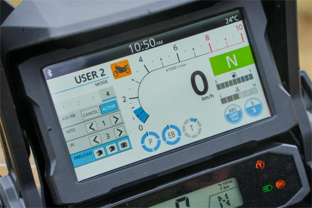 科技大满配,全方位冒险伙伴两款车型均搭载了目前二轮界最顶尖的电控系统,核心的六轴IMU传感器连动了弯道ABS、七段可选扭力控制(HSTC)、前轮抬头控制(Wheelie Control)以及多达六种的骑乘模式设定; 而标配的 6.5 寸全彩触控仪表不仅支持 Apple CarPlay 与 Android Auto,更让骑士能一边听导航、通话,一边轻松驾驭。