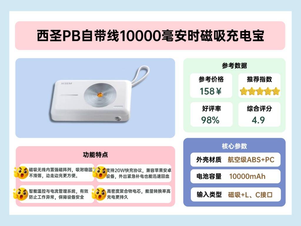 1、西圣PB磁吸充电宝