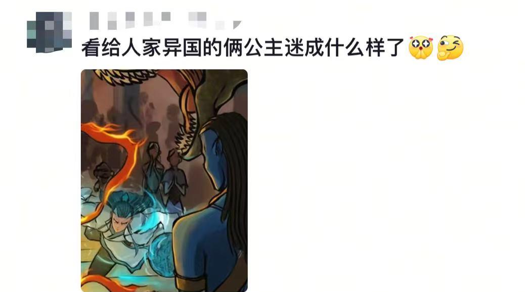 后来那幅更新后的画更有意思了,接冲到了阿凡达面前,头顶还有巨大的金箍棒和云层中的天兵天将,整个画面气势完全变了。阿凡达不再是那副慵懒样子,而是惊讶地从坐位上站起来,表情紧张地拿起了武器,感觉好像突然意识到了威胁。