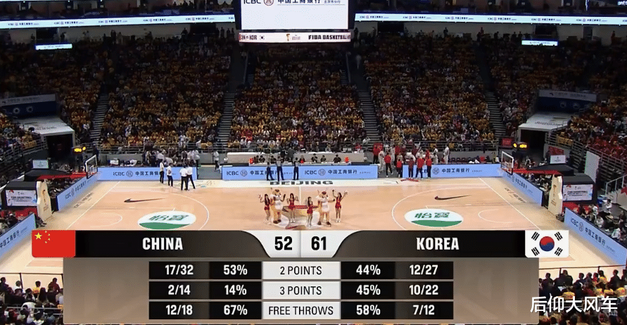 但好在第三节韩国队体能也有所下降,三分攻势放缓罚球失准给了中国队追分机会,三节战罢,中国队52-61将分差艰难追到9分。