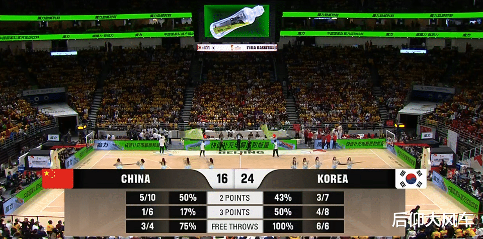半场战罢,中国队没有打出亚洲杯期间的自信表现,曾凡博、张镇麟、朱俊龙、程帅澎胡明轩也没有防住李贤重李政炫,以34-47落后韩国(半场三分中国队仅8中1,韩国16中9),只有廖三宁胡金秋表现合格,廖、胡半场合力砍下18分,而李贤重是20分!