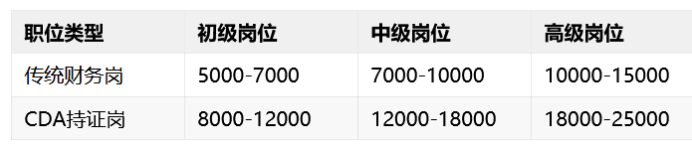 CDA持证人 vs 普通财务人员薪资对比(月薪,单位:元)