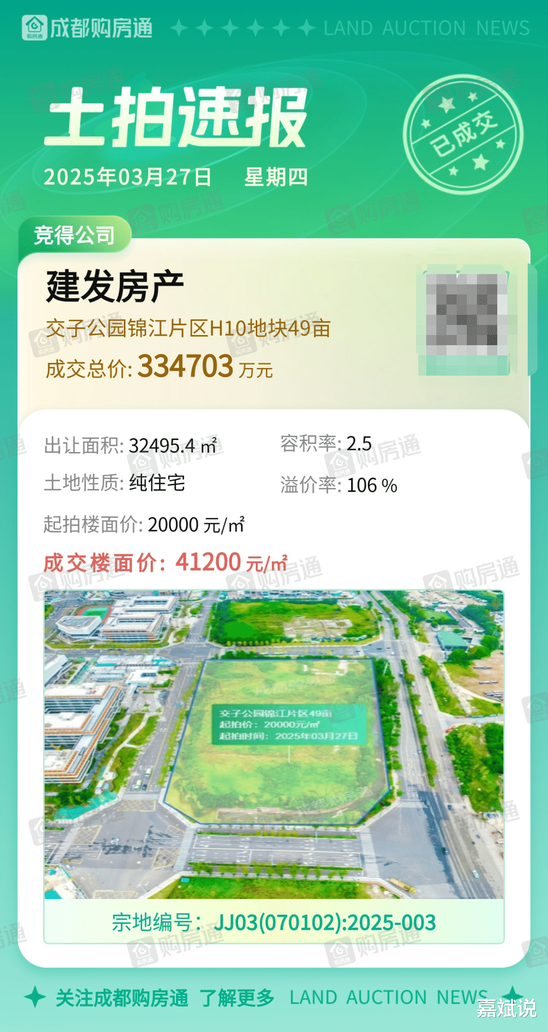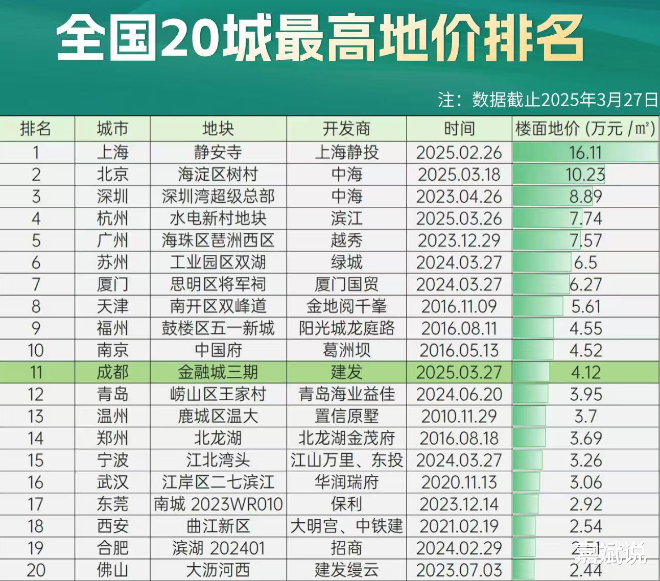 今日,成都新地王出现,楼面地价高达41200元,创历史新高。