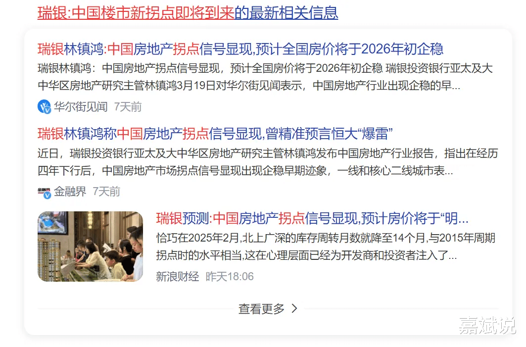 针对当前楼市,瑞银也给出了最新的预测,中国房地产拐点信号显现,预计房价将于2026年初企稳。