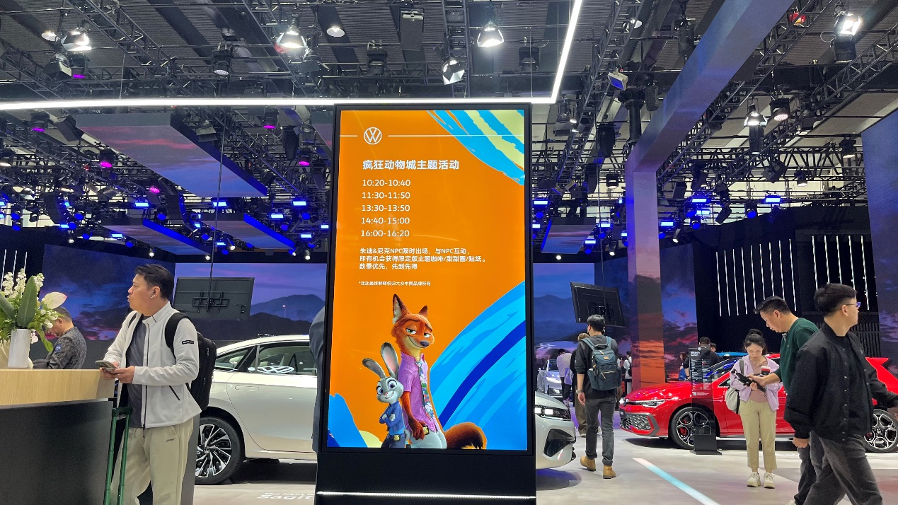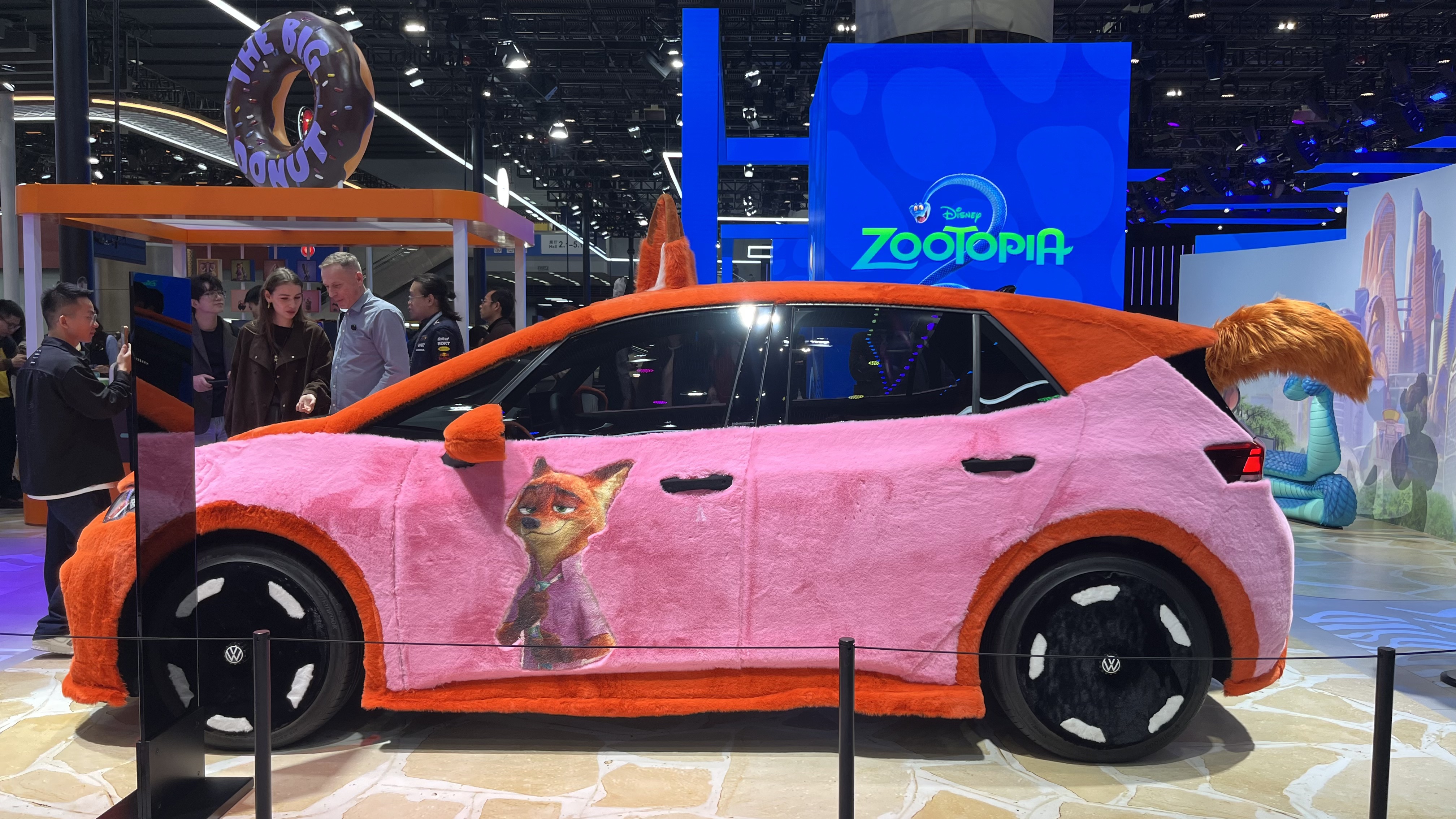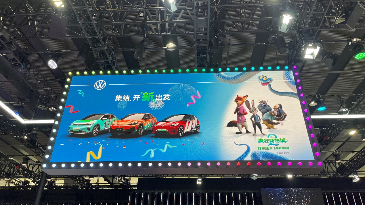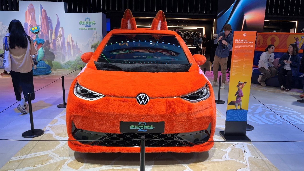上汽大众在2025广州车展上与《疯狂动物城2》梦幻联动,推出ID.3 GTX尼克定制车,并邀请用户参与品牌活动,以趣味互动形式宣传新能源车型。