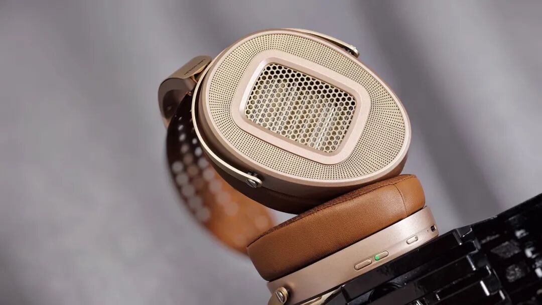 HIFIMAN HE1000 WiFi的外观,相当程度上继承了HE1000U的大致样貌,而全新设计的更紧凑更具便携性的新型人体工程学头梁和通体香槟金的漆面,配上深棕色的软质内头梁和耳罩,使得它看上去更适宜动态使用且更加骚包,这也意味着HIFIMAN是有意赋予这款产品更多直面普通消费者的特征,其野心可见一斑。考虑到产品定位和应用场景都发生了相应变化,它没有采用娇贵的无格栅设计,纳米级厚度振膜隐形磁体增强磁体这些法宝则得以保留。