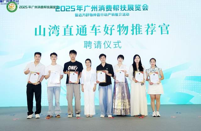 活动现场,还举行了“山湾直通车好物推荐官”聘请仪式。最后,随着启动装置点亮,2025年广州消费帮扶展览会正式拉开帷幕,标志着一场覆盖产销对接、品牌推广、科技赋能、文旅融合的消费帮扶盛宴全面开启。