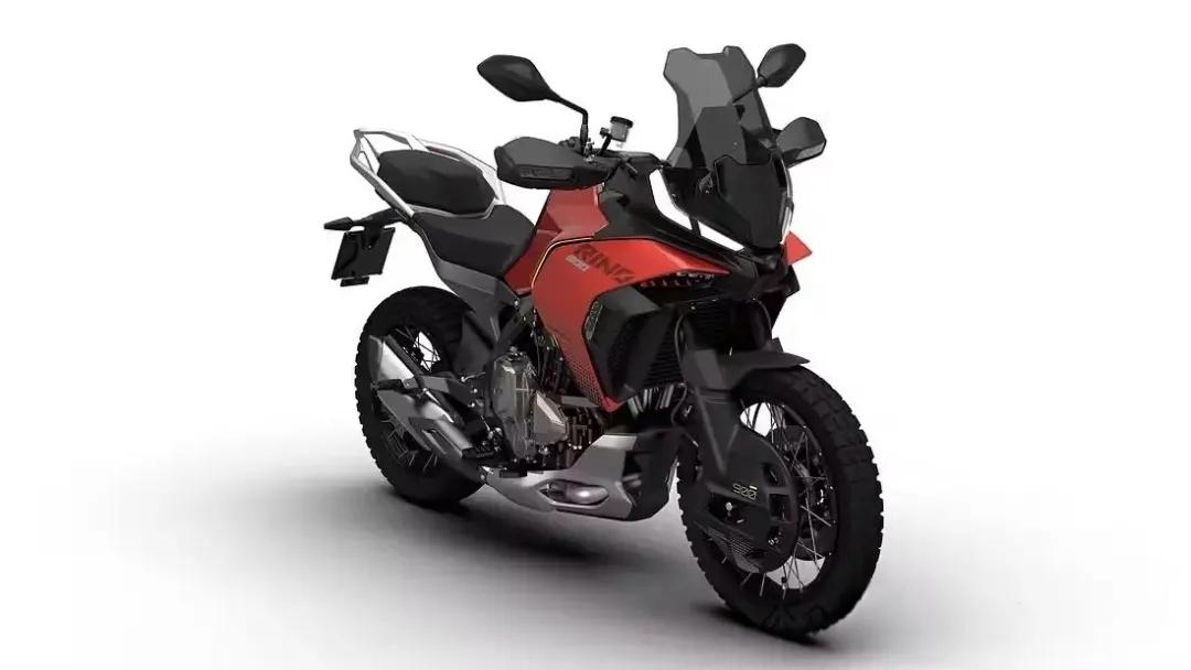 三缸ADV——RINO900这台RINO 900依旧延续着最新的家族化风格,立体造型的车头与风挡融为一体,同时也营造出了悬浮的感觉,手把护罩的造型也与车身线条相呼应,如果硬要挑一点“毛病”出来的话,这幅后视镜确实有点拉低了整车的高级感。车架上这台车采用钢管主车架+铝合金副车架的结构,引擎作为车架一部分从而来降低整备质量。