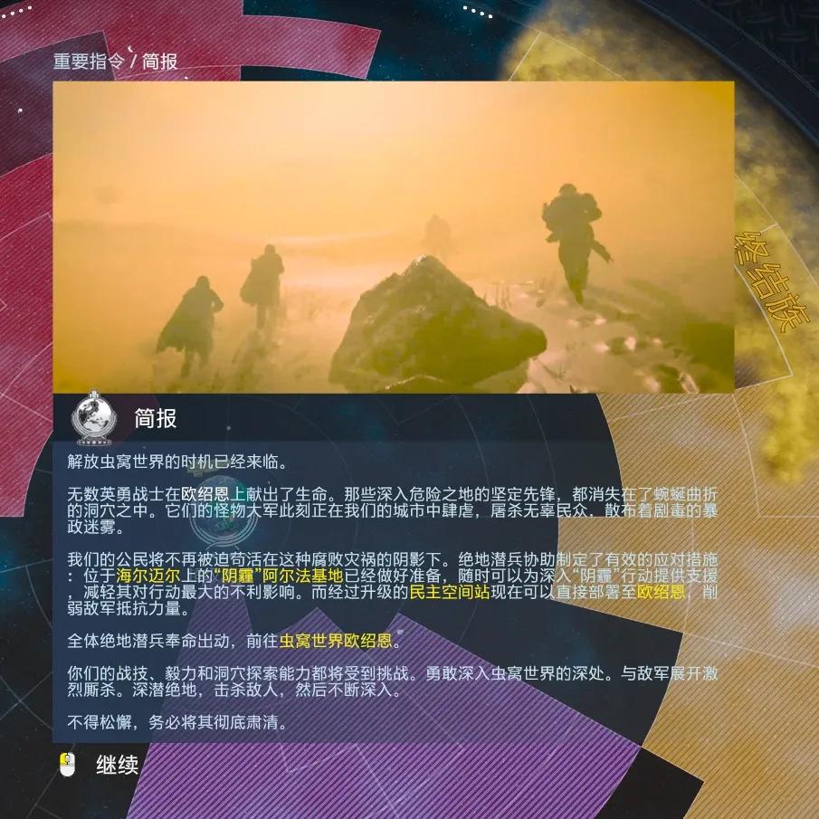 同时,这是我们最核心的叙事框架。我们通过它来讲述故事,社区也通过它来参与故事。所以,你在任务中做的每一件事——消灭虫子、炸毁目标——这些之所以意义重大,正是因为它们会影响银河战争的走向。