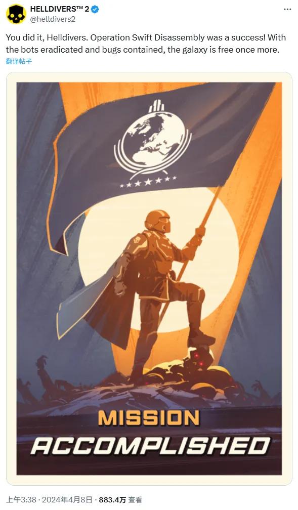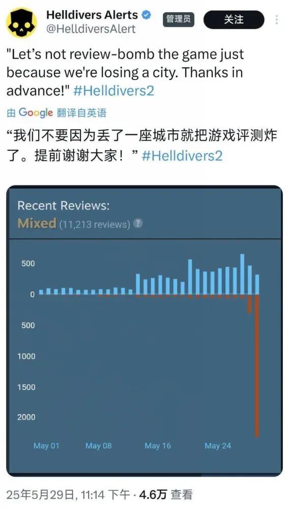 靠着这股沉浸感,游戏本身讽刺戏谑的基调也给社区管理省了不少事。某次更新引发了新的bug?要换别的厂商,估计就是道歉、补偿一条龙。他们倒好,随着上线修复补丁,用“超级地球”(游戏内极权政府)的口吻发布了简报,告诉所有人:一切正常,如果觉得不对劲,您很可能受到了敌方精神控制,请立即接受审查。