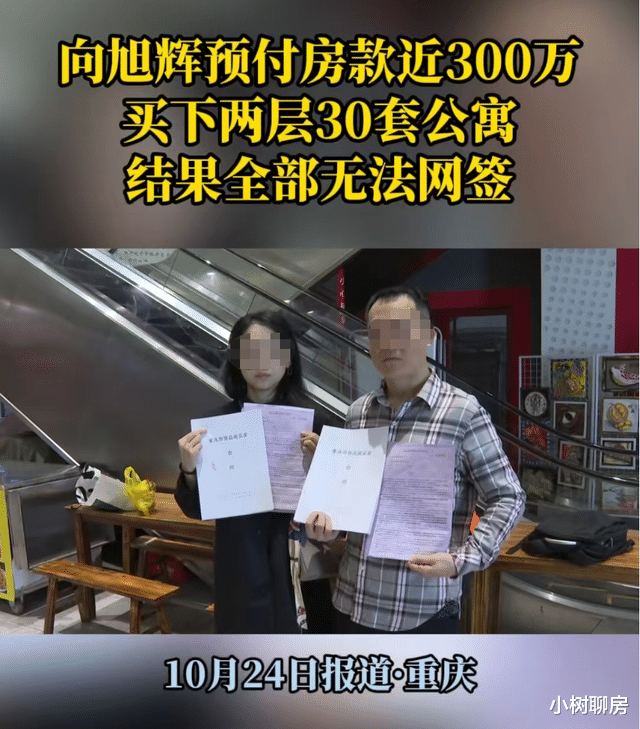 事情的经过,就是购房者预付近300万买下某楼盘两层公寓用来开酒店,结果过了两个月仍无法网签,后来才发现这些房子已经被抵押了,根本无法过户。