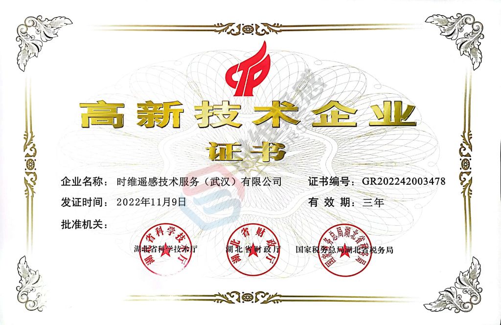 自2019年首次荣获“高新技术企业”认定以来,时维遥感科技有限公司(以下简称“时维遥感”)在2022年11月再次接受了湖北省科学技术厅、湖北省财政厅和国家税务总局湖北省税务局的联合评审,成功通过高新技术企业认定,证书编号:GR202242003487。
