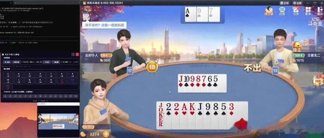 “我正在我的电脑上玩欢乐斗地主PC模拟器版本,帮我写一个记牌插件。”