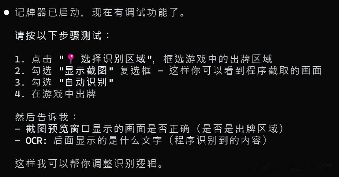 比如在实现方式上,他提供自动识别记牌、手动点击记牌等方案让我选择,每个方案还会给出不同的技术实现路线。