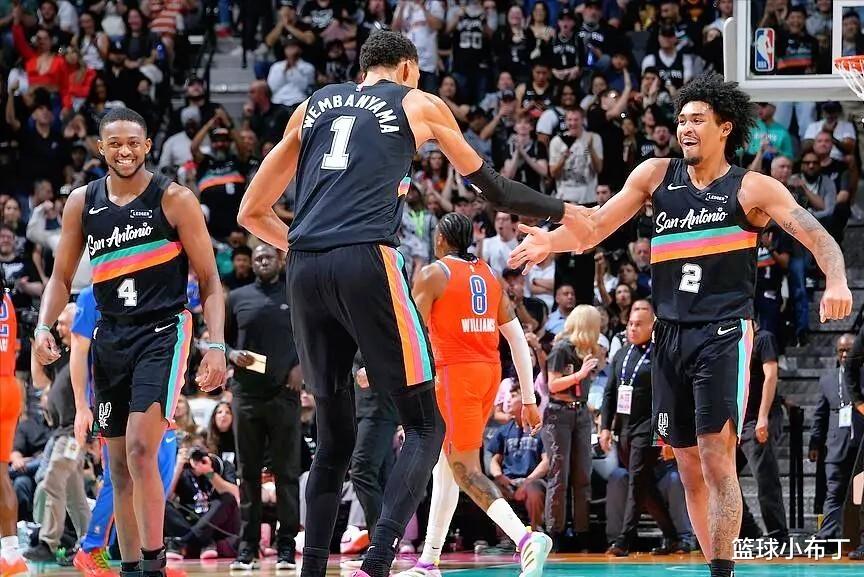 再论阵容,这是马刺最核心的资本,和上赛季的火箭有本质区别。上赛季火箭也是西部第二,但队里没有一个能左右比赛的绝对强点,关键时刻容易断电,最后也没冲出西部。而马刺不一样,他们内线有文班亚马,联盟前三的超级中锋,这就是他们的定海神针。