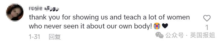 “谢谢你愿意展示给我们看,也让很多从未见过这种情况的女性更了解我们自己的身体!”