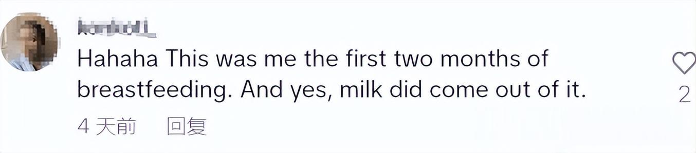“哈哈哈,我母乳喂养的前两个月,就是这个样子。没错,真的有乳汁从那里流出来。”