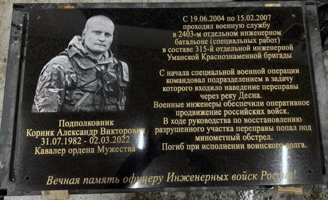 科尼克·亚历山大·维克托罗维奇中校,在切尔尼戈夫附近的杰斯纳河上建造浮桥时遇难。在领导修复被毁浮桥的过程中,他遭到迫击炮袭击在执行军事任务时牺牲。与他一同遇难的还有8名士兵另有17名同团士兵受伤,6名遇难士兵的遗体未能从水中打捞上来被水流冲走了。