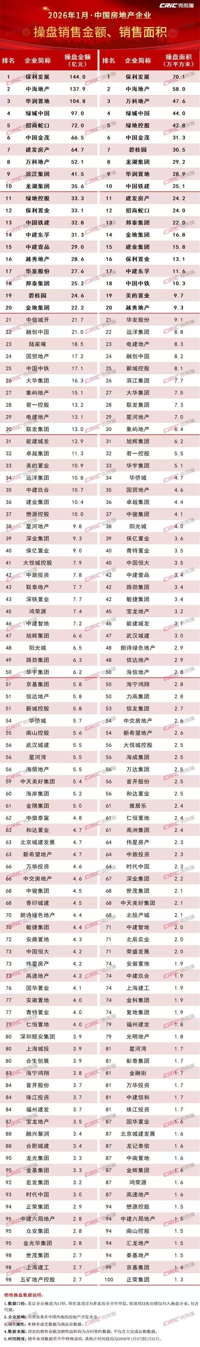 从企业表现看,头部房企格局保持稳定。在克而瑞发布的操盘榜上,保利发展以144.0亿元销售额和70.1万平方米销售面积双双位居榜首。