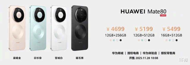 以华为Mate 80标准版为例,外观方面承袭Mate家族极具辨识度的星环设计以及中轴对称美学。在此基础上带来了更具冲击力的双环形态,竖看像“8”,横看像“♾️”,搭配灵感源自山川自然的四大全新配色,整机更具辨识度,也更具未来感。此次新机全系搭载了2.5D直屏以及3D ToF超精密前置摄像头,观感更清爽利落,手感更舒适,支付更安全。