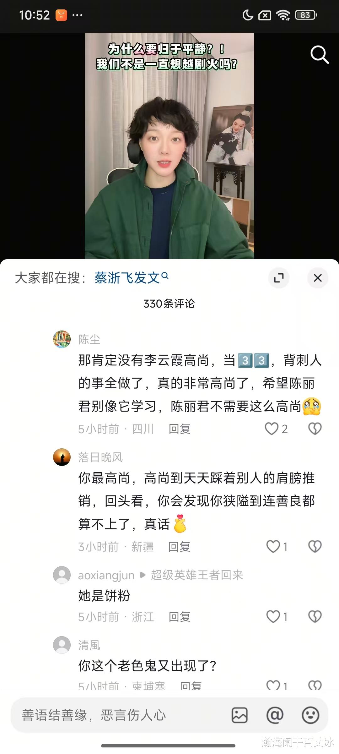 陈丽君是越剧顶流,各方都把她捧的很高,按理说,在她的带动下,在她的影响力之下,很多人都应该被她熏陶的非常有教养,有礼貌才对,她的粉丝也应该表现出和她一样的“优秀”才对啊!
