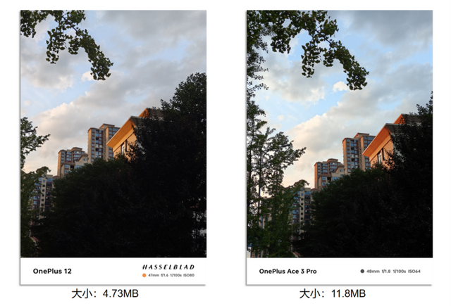 至于色彩,个人觉得一加12偏暖色,大部分场景更加接近真实色彩,ACE3Pro色彩偏冷,看起来更加舒服。这两张日落时分拍摄的照片我也放在社交平台让大家对比看过。