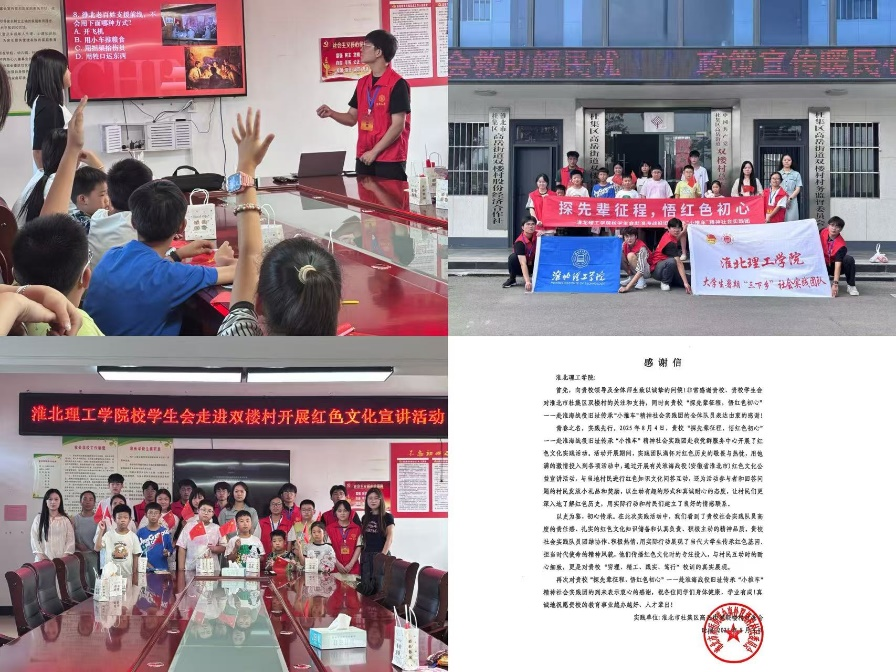 此次暑期“三下乡”活动,淮北理工学院校学生会的学子们在追寻红色记忆中坚定理想信念,在传承革命精神中展现青春担当。未来,他们将继续以实际行动,让红色基因代代相传。(图:孟亚楠、牛家琦、杨润泽/文:牛家琦、王灿灿/审核:王雪芃)