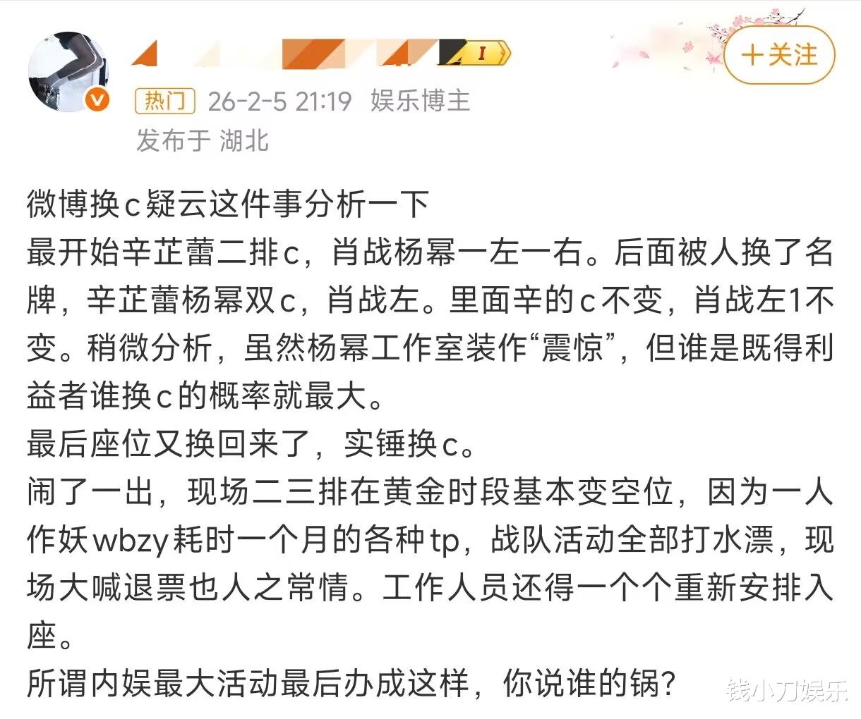 不过由于肖战的座位又换回来了,所以很多人还是倾向于杨幂争C位连累了肖战。