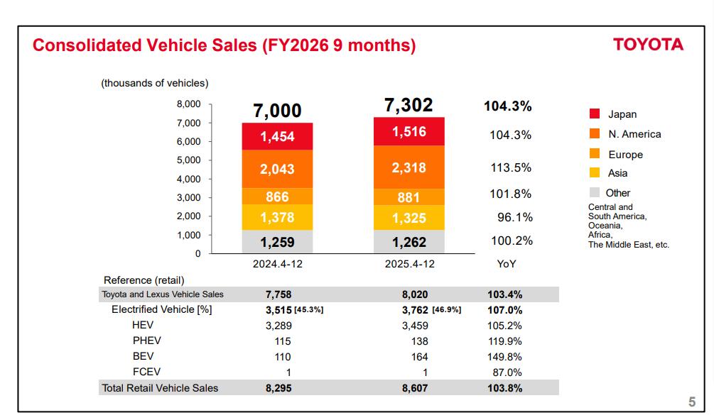 这些措施已初见成效。尽管北美市场营业利润因关税转为亏损,但丰田通过成本削减及价值链优化,实现了约9000亿日元的经营改善,并将2025财年营业利润预期从3.4万亿日元上调至3.8万亿日元。盈利修复为转型提供了至关重要的“弹药库”。