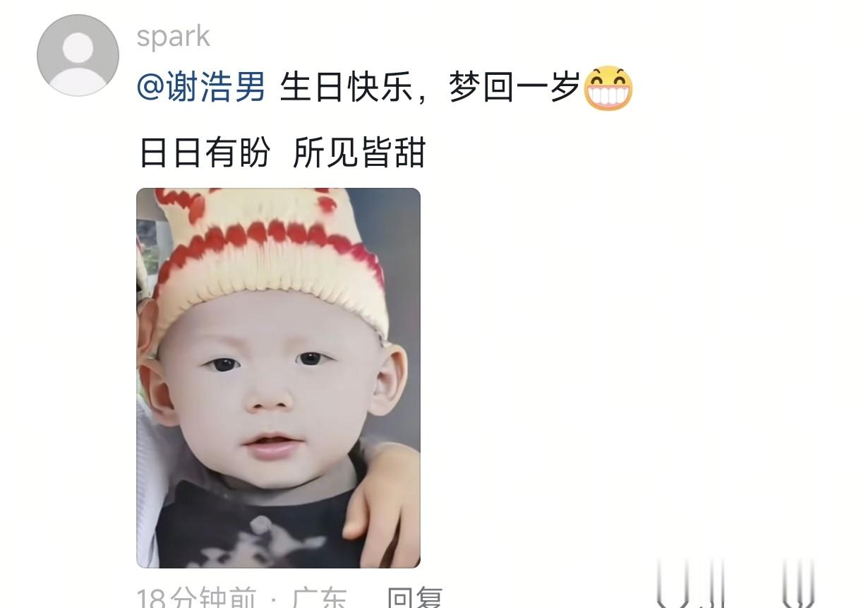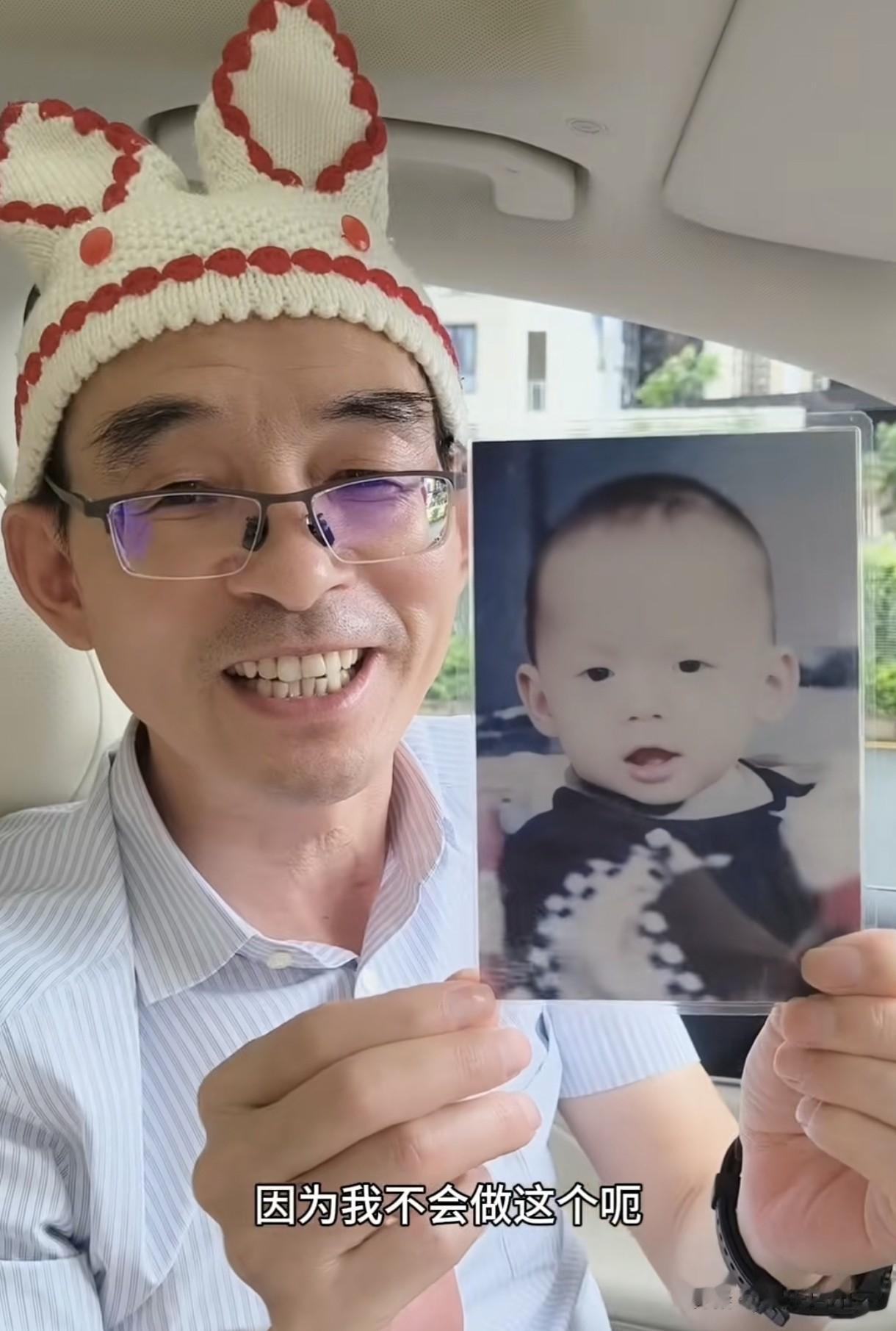 老谢拿出了谢浩男一岁时唯一的照片,让懂P图的网友把这顶帽子放到谢浩男的头上。