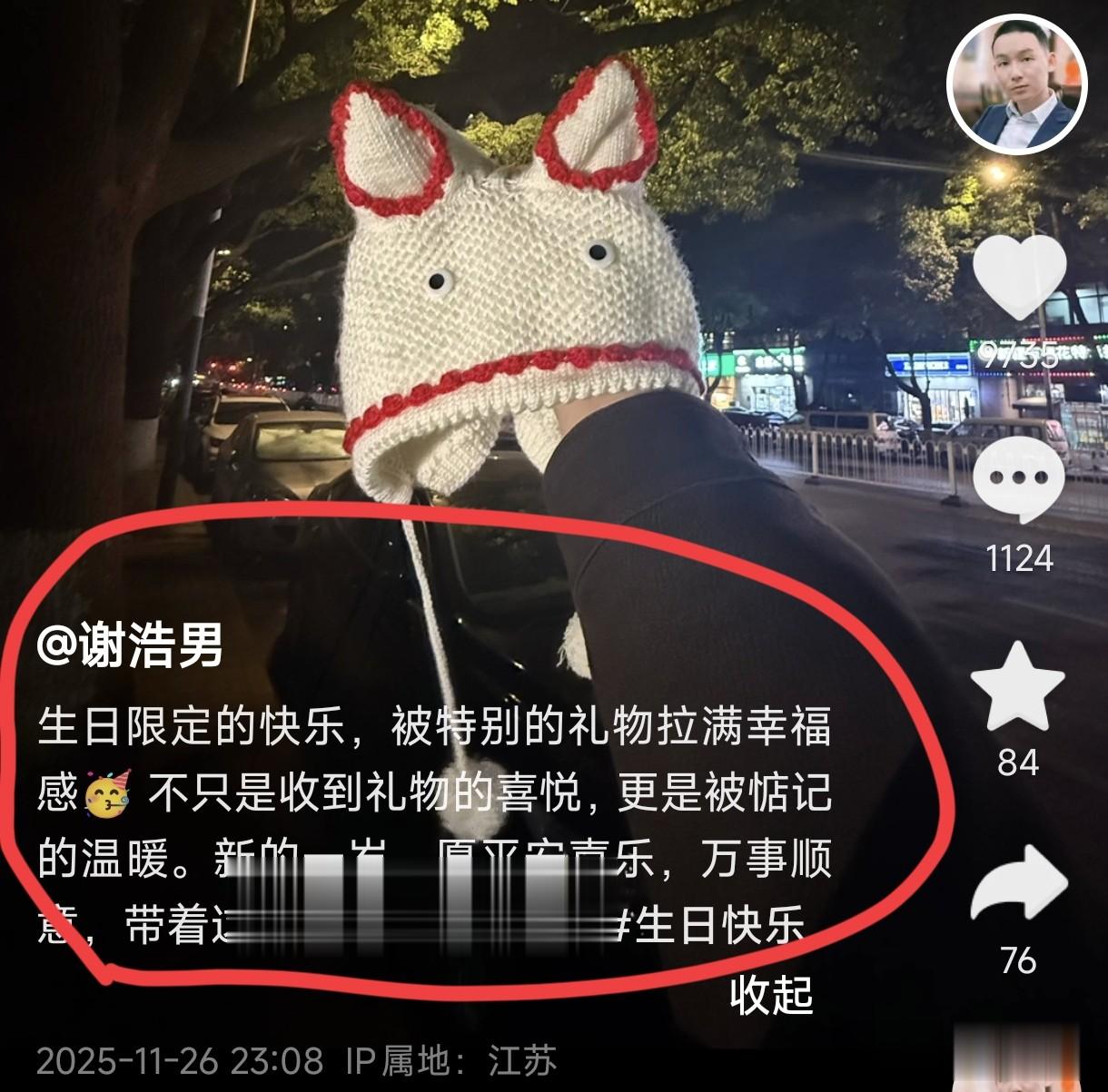 在夜色中,在谢浩男27岁生日的那天,他收到了一份特殊的生日礼物。